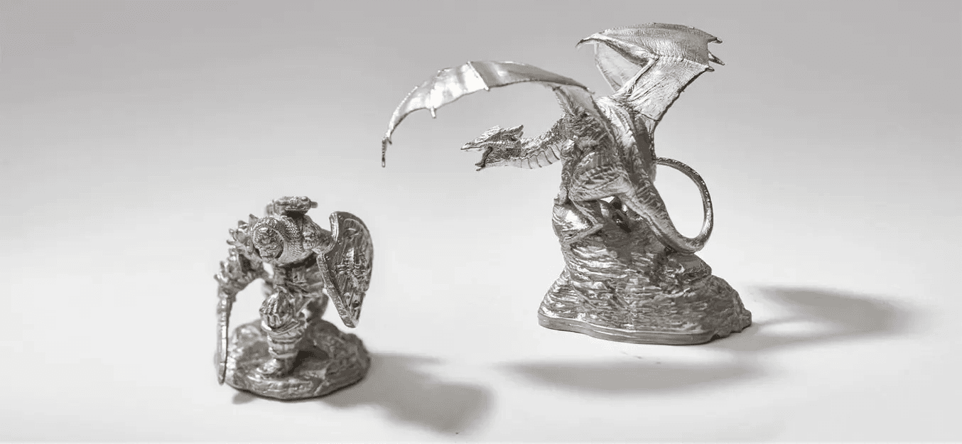 使用锡铸和 3D 打印制作的金属微缩模型。