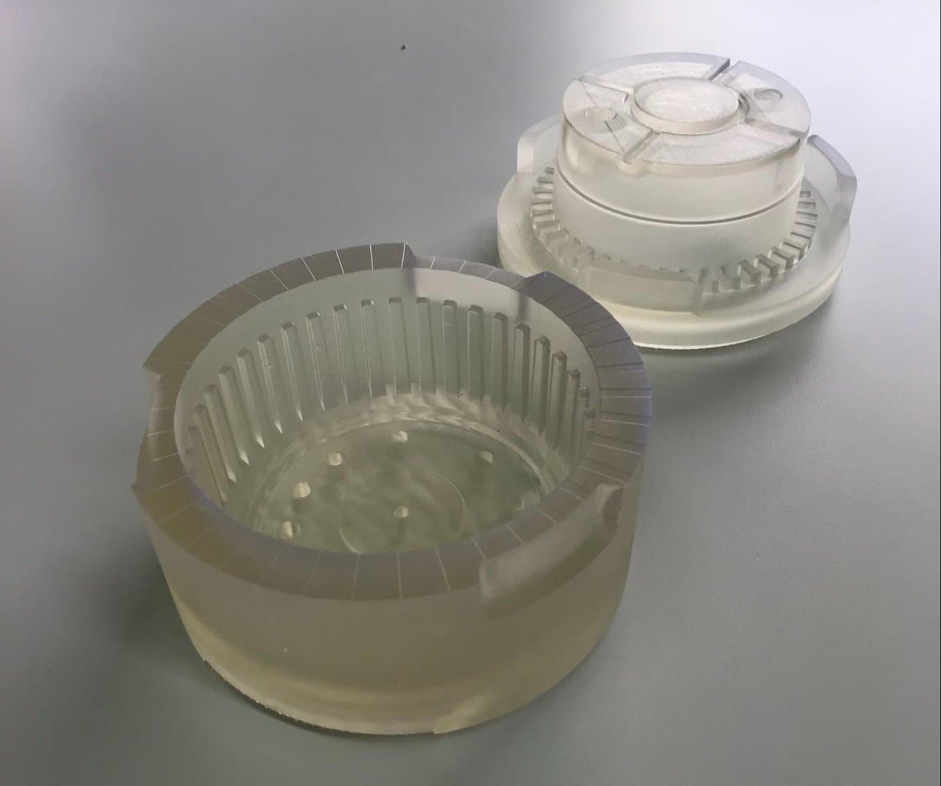 使用 Clear Resin 注蜡的 3D 打印模具。