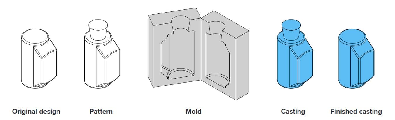 如需开始金属铸造流程,制造商首先必须设计出所需的模型。该模型对于设计铸造模具至关重要。传统的模型由木材、泡沫、塑料或蜡制成,可确保模具精确地生产出金属成品。如今,3D 打印也成为了一种常见的模型制作方法,设计师可以直接通过数字 CAD 软件工具制作精确的模型。