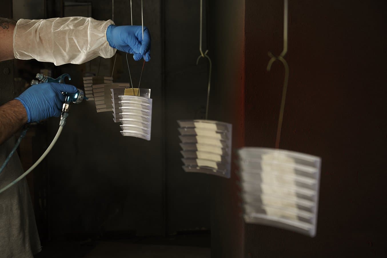 Formlabs 和 Aranda/Lasch 团队与一家汽车喷漆店合作,为安装在时代广场上的“心灵之窗”透镜的每片镜片喷涂 Lesonal Universal Clear 清漆。