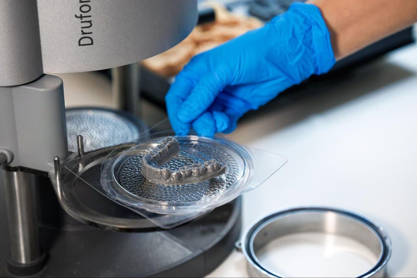 热压成型的 3D 打印模具还可以经济高效地制造定制成品部件。例如,利用 3D 打印模型进行热压成型和模压成型是生产正畸透明矫正器的首选方法。