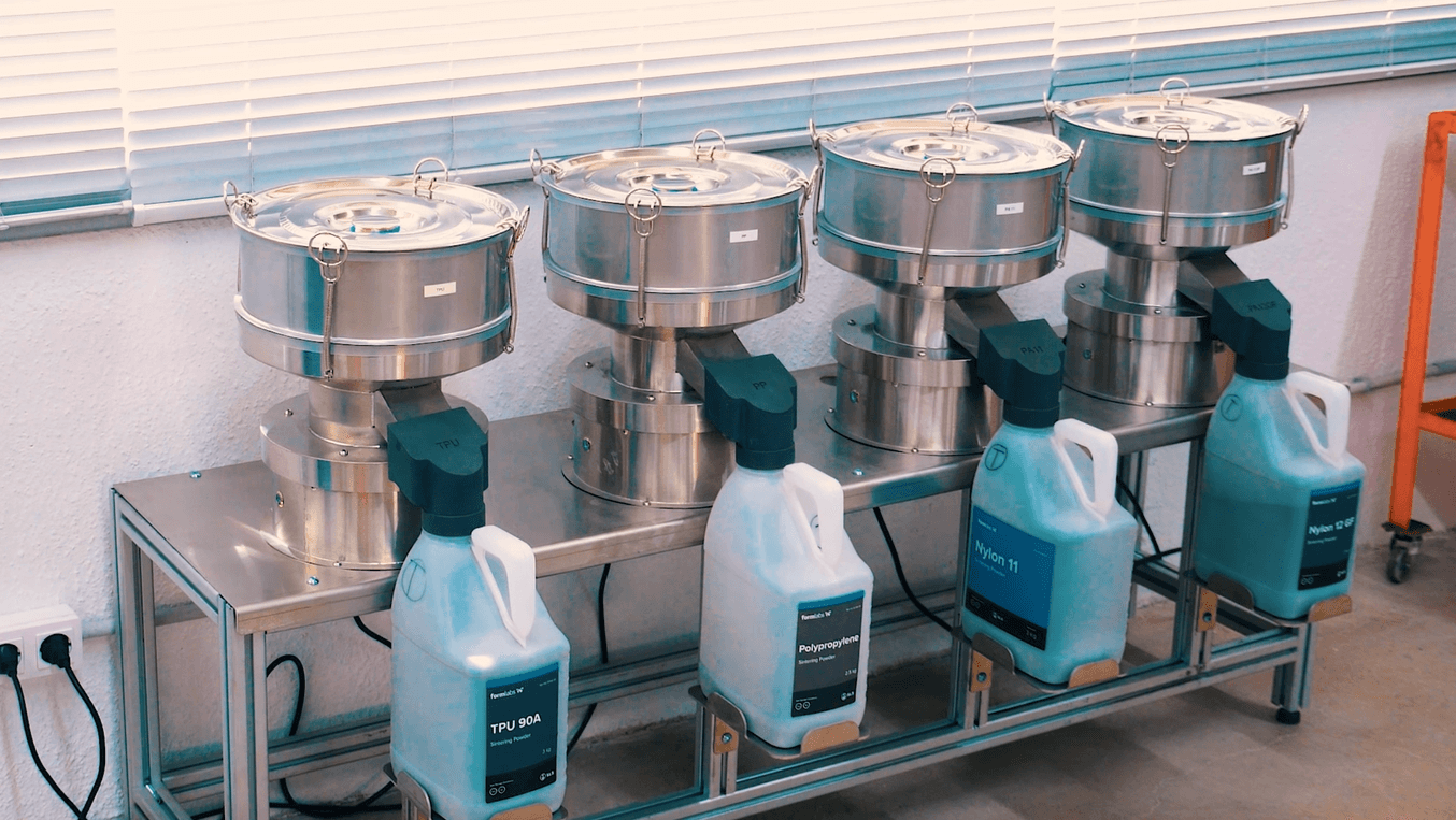 WLD 使用 Fuse Sift 回收 Nylon 12 Powder,但在使用 Fuse Depowdering Kit(Fuse 除粉套件)去除部件上的未烧结粉末后,还可以通过这些粉末混合解决方案回收其他粉末。