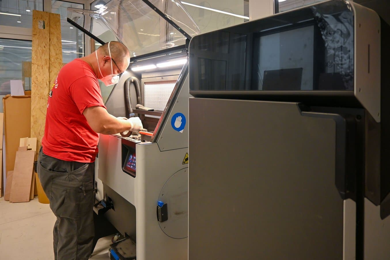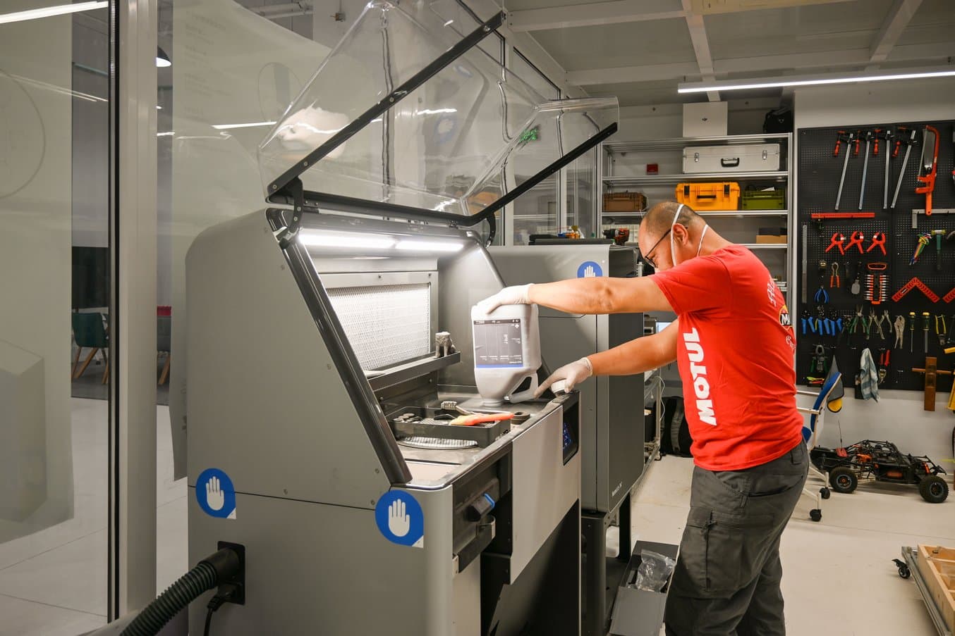 其实,这并不是曦创教育第一次采用3D打印系统,早在2019年,结构设计团队就采购了一台FDM打印机,但仅用于外观验证。由于FDM技术的尺寸和外观精度都不是很高,当时并没有觉得能够很大程度上解决他们的小规模原型验证的痛点。在经过更深的对3D打印了解之后,知道了选择性激光烧结技术可以有更高的打印效率、更好的打印精度以及对结构件能更好的验证,从而选择了Fuse 1+ 30W打印系统。